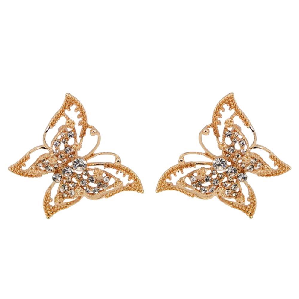 METAL RHINESTONE BUTTERFLY STUD EARRING