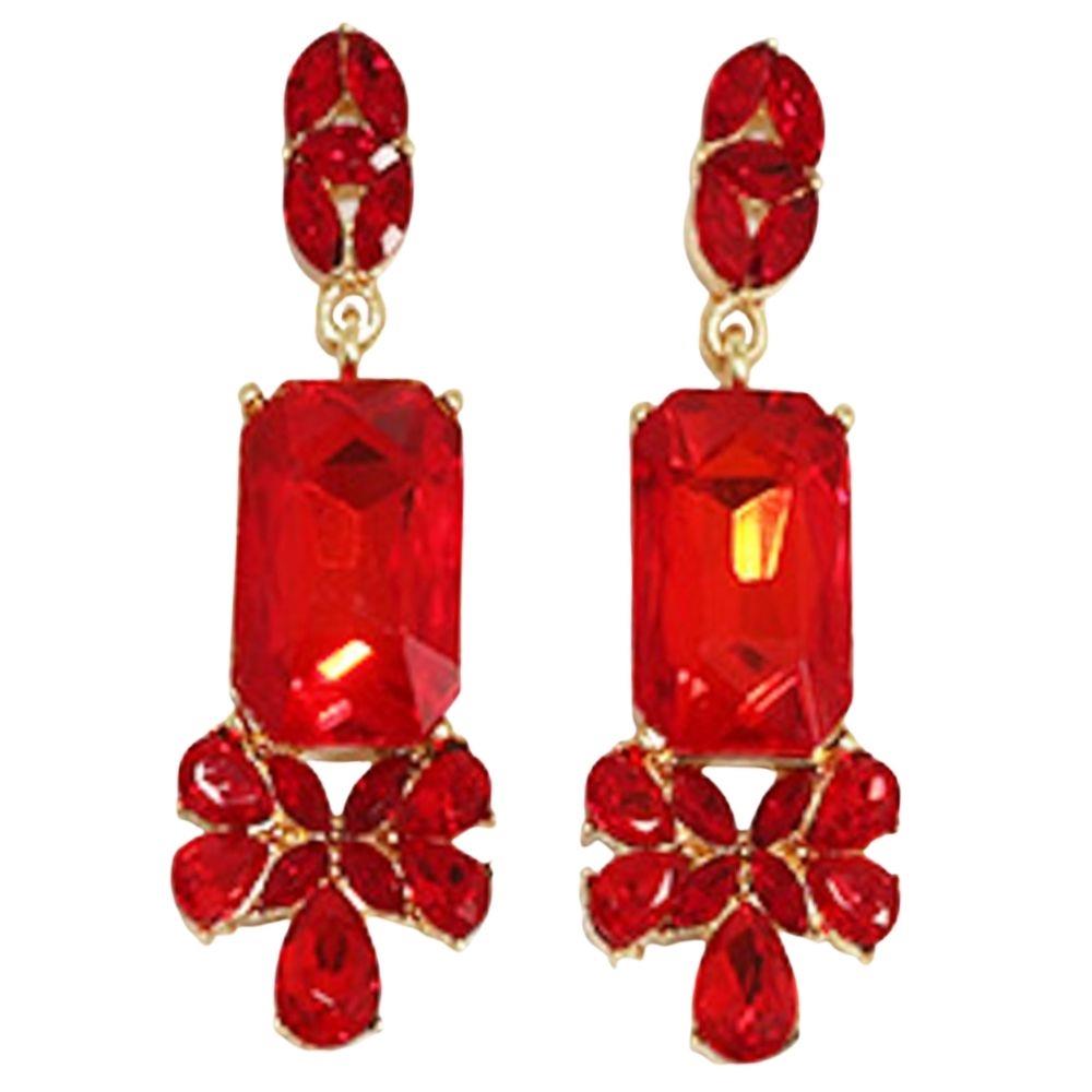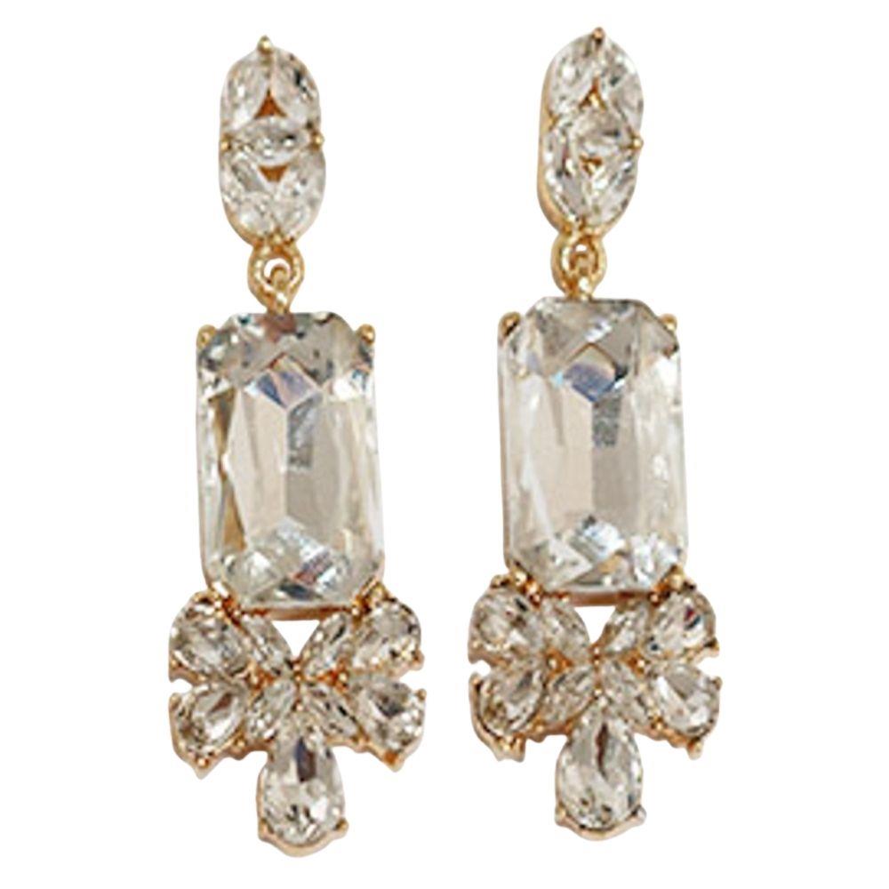 CRYSTAL RECTANGLE DROP DANGLE EARRING