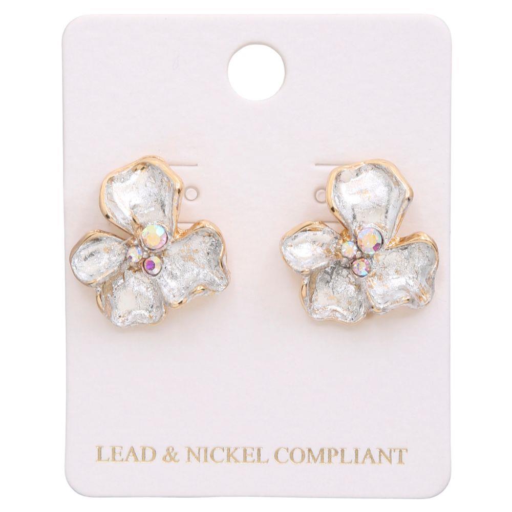 TWO TONE RHINESTONE FLOWER POST EARRING