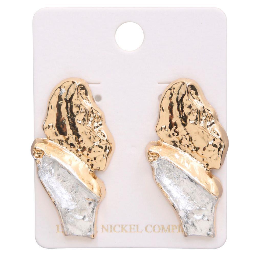 TWO TONE ORGANIC SHAPE METAL EARRING