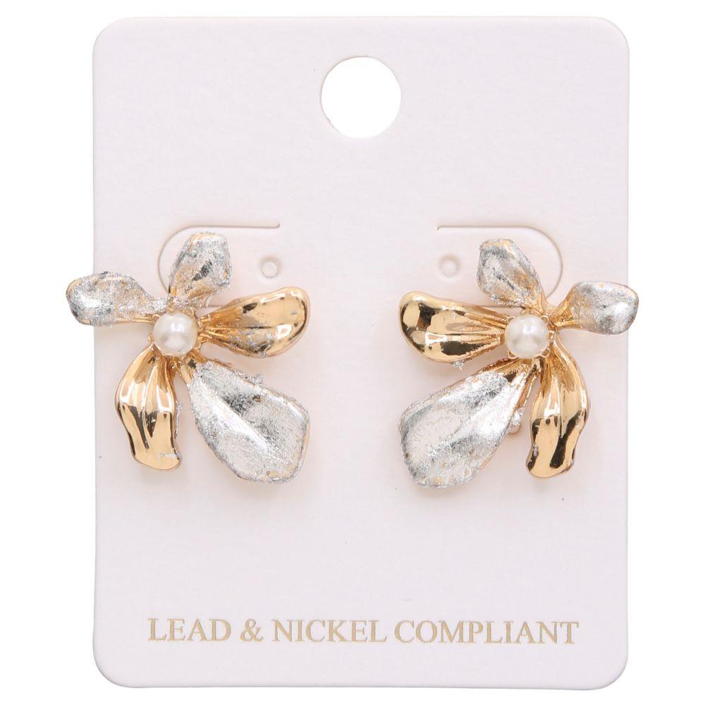 TWO TONE FLOWER PEARL BEAD EARRING