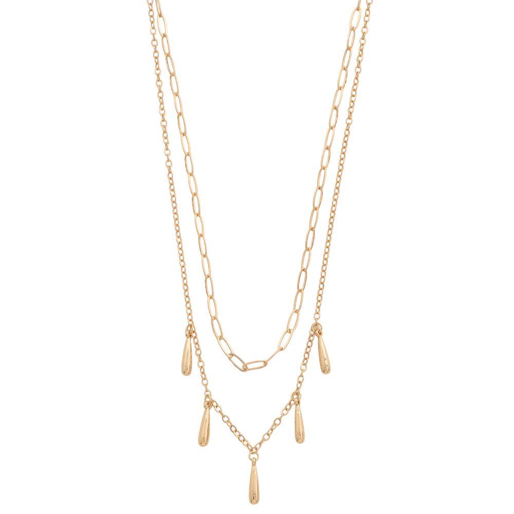 LONG TEARDROP BEAD OVAL LINK LAYERED NECKLACE
