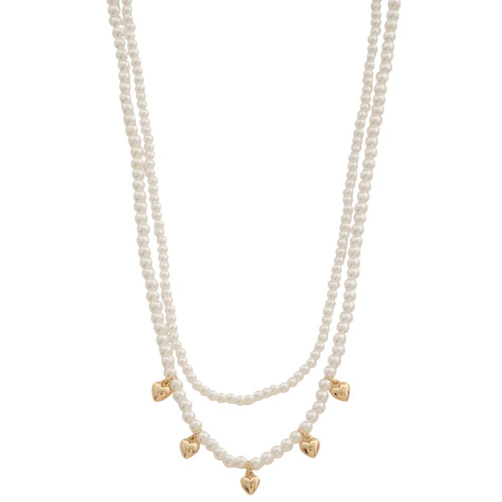 DAINTY HEART CHARM PEARL BEAD LAYERED NECKLACE