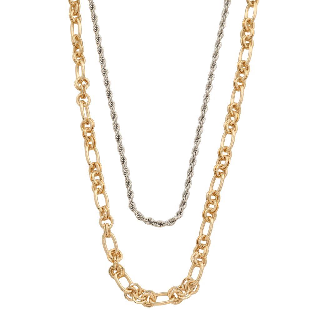 TWO TONE CHAIN LAYERED METAL NECKLACE