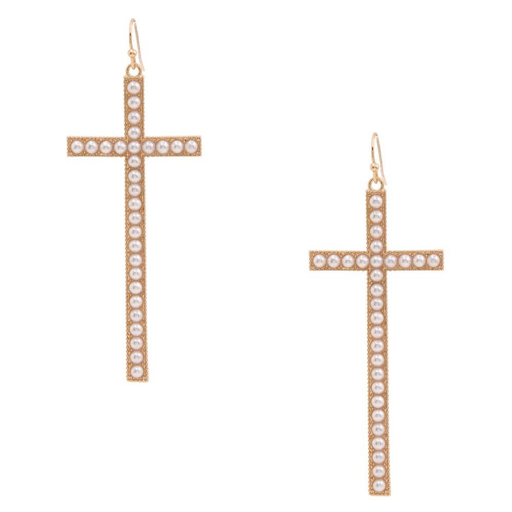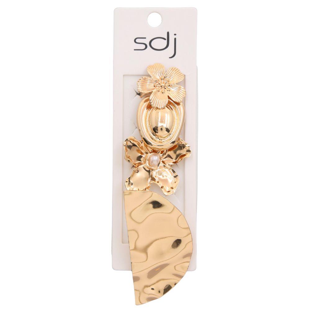 DOUBLE METAL FLOWER PERAL BEAD POST DANGLE EARRING