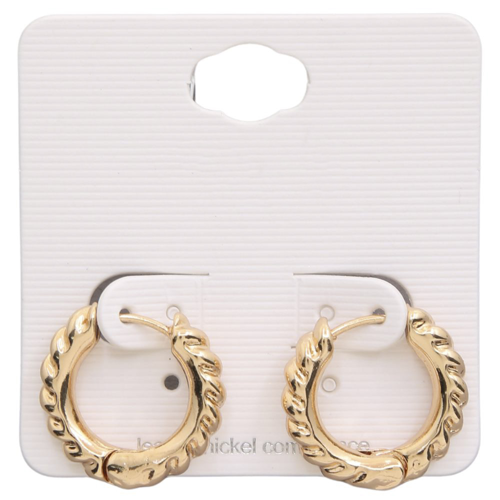 TEXTURED METAL DOUBLE TUBE HUGGIE HOOP EARRING