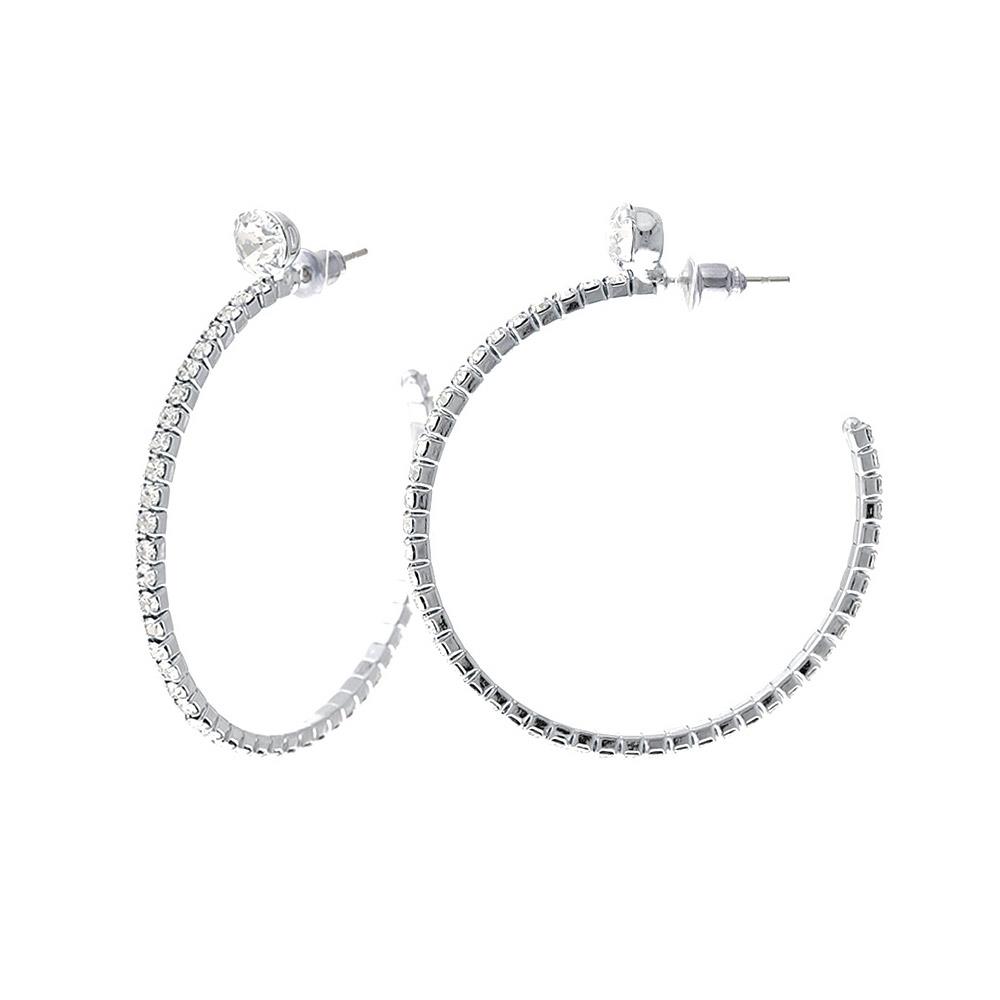 RHINESTONE ROUND TOP 40MM HOOP EARRING