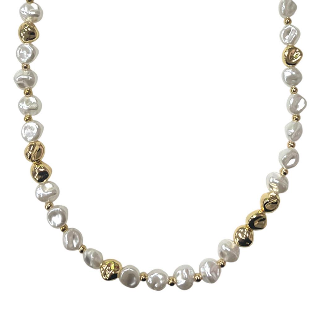 SODAJO PEARL METAL BEAD OVAL LINK GOLD DIPPED NECKLACE
