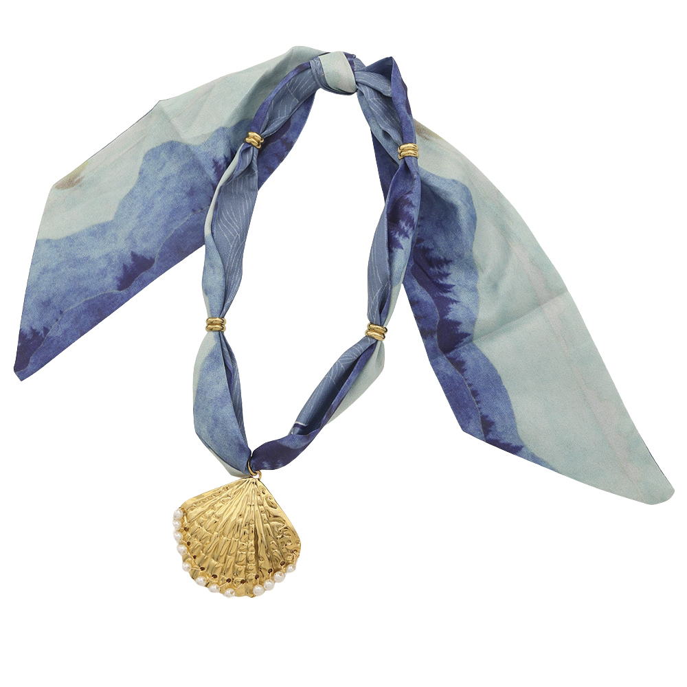 OCEAN SHELL PENDANT SCARF NECKLACE
