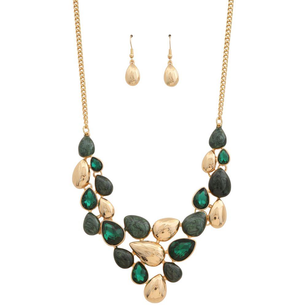 FACETED ACRYLIC BEAD GREEN RESIN OVAL NECKLACE