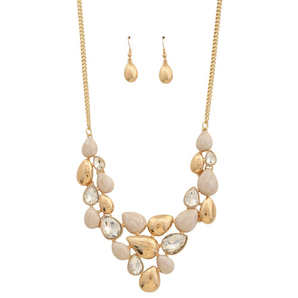 FLOWER LEAF PATTERN RHINESTONE METAL NECKLACE