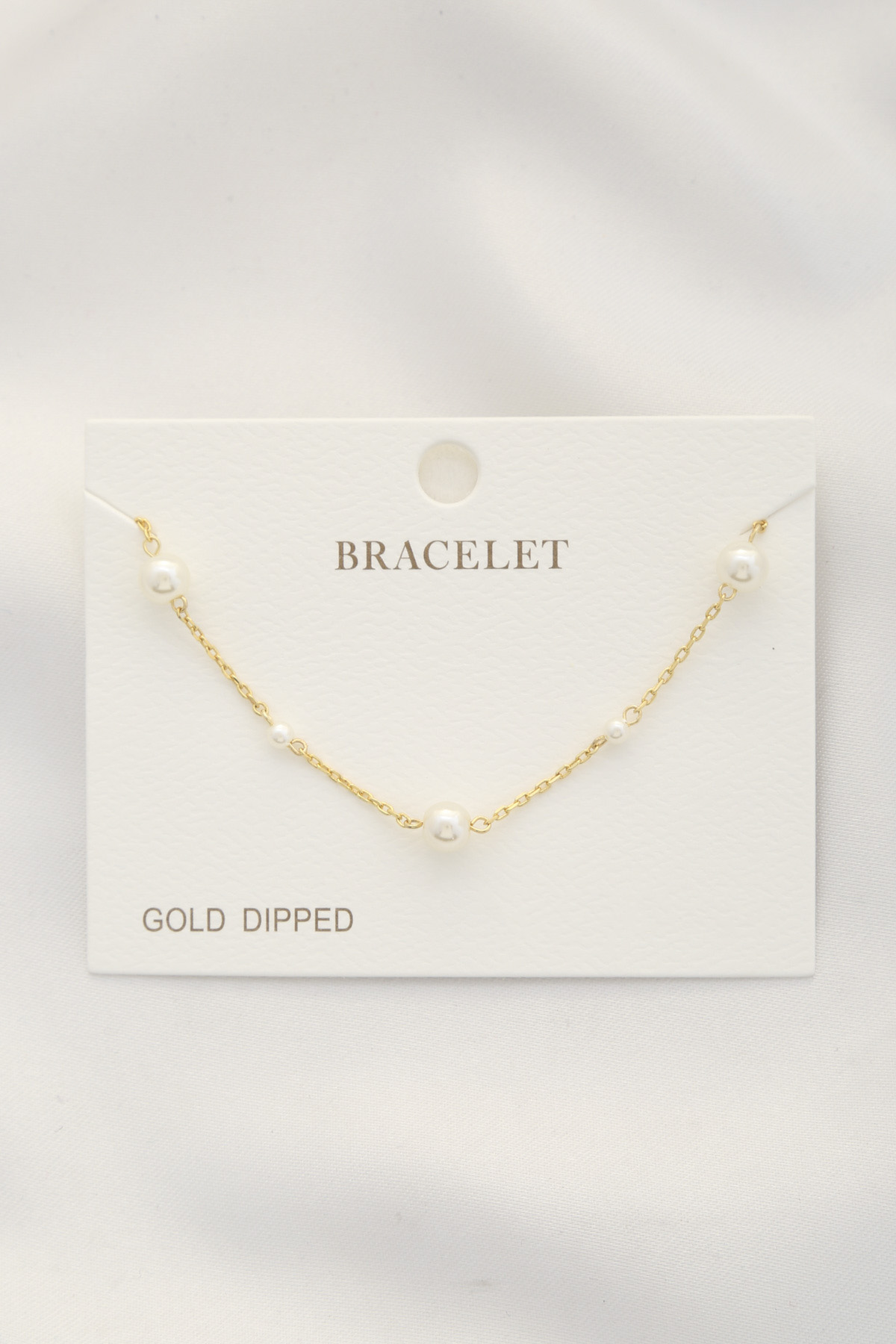 GOLD DIPPED METAL CHAIN LINK PEARL ACCENT BRACELET