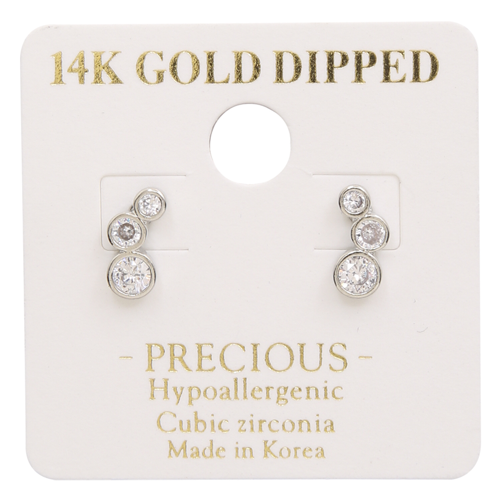 14K GOLD DIPPED THREE CRYSTAL DESIGN EARRING