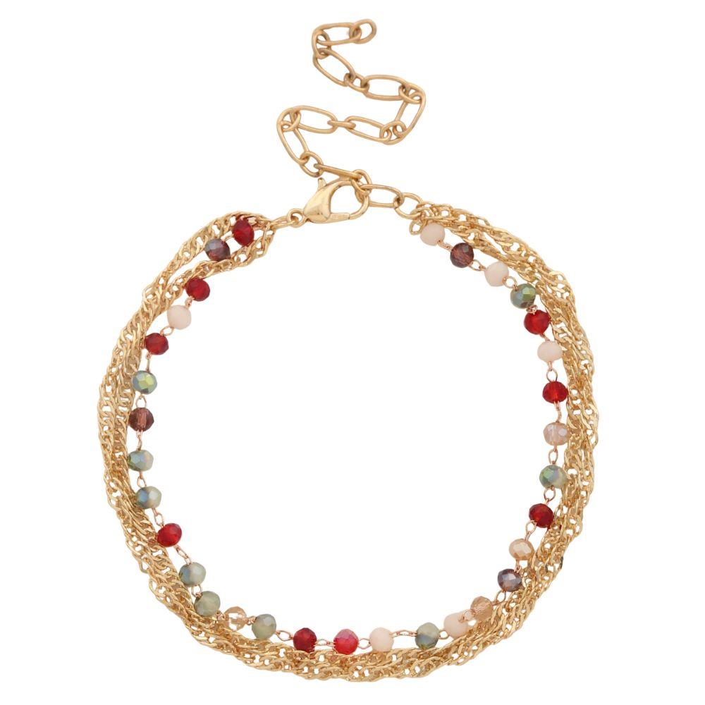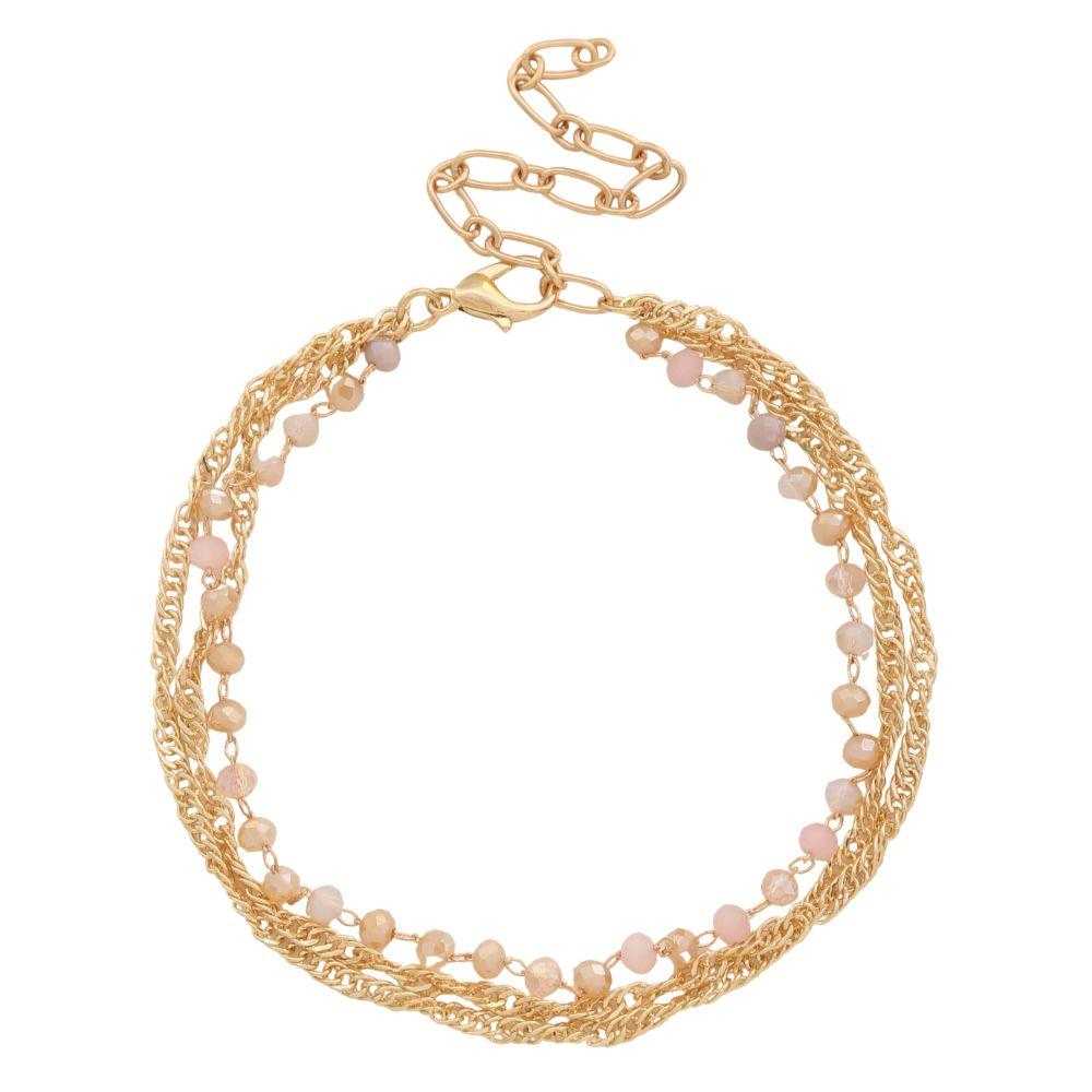 BEADED CHAIN LINK LAYERED METAL ANKLET
