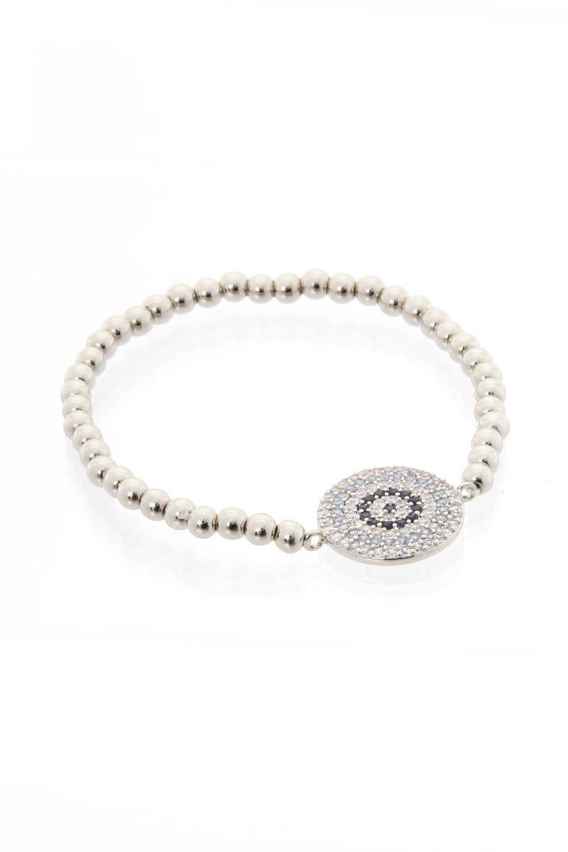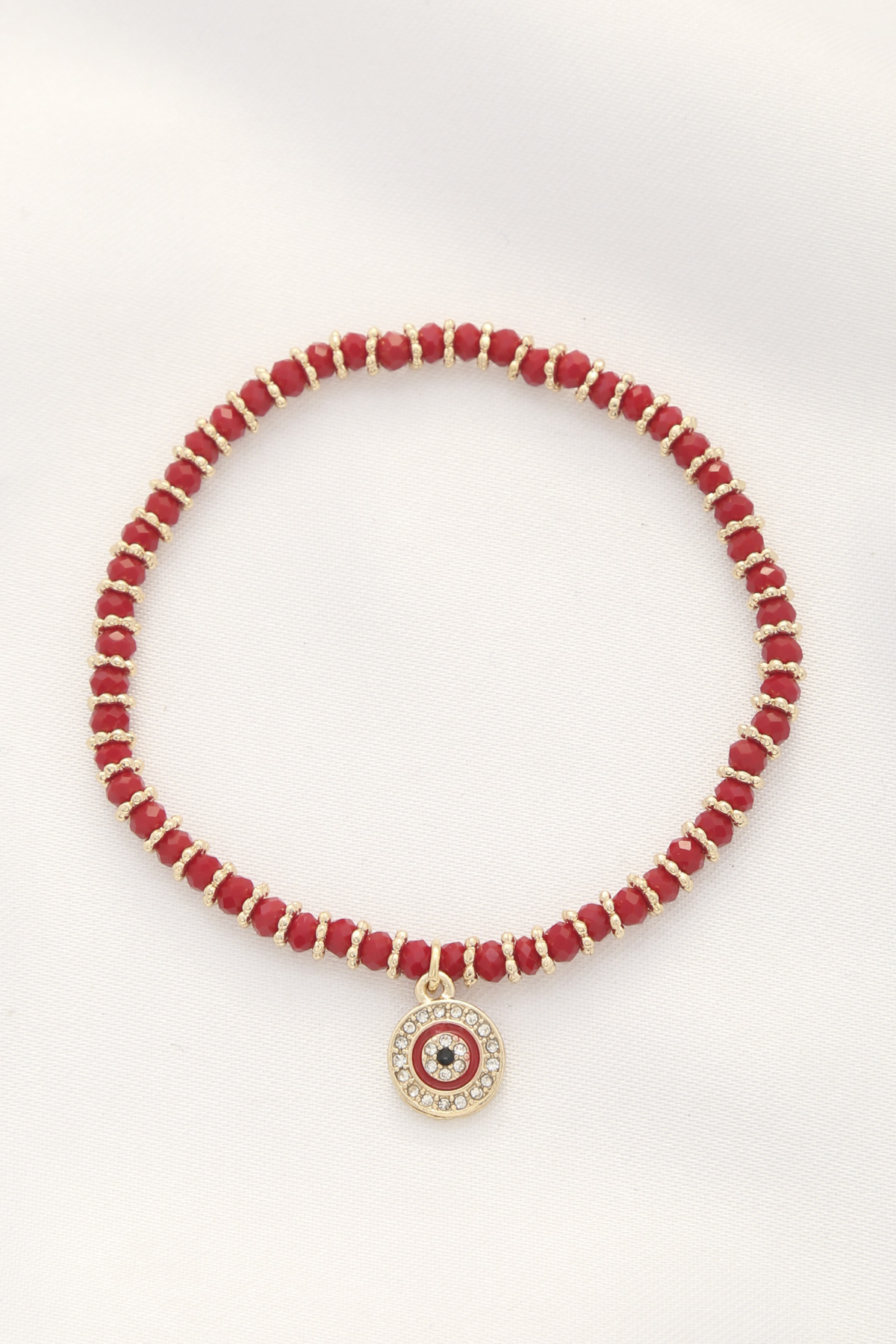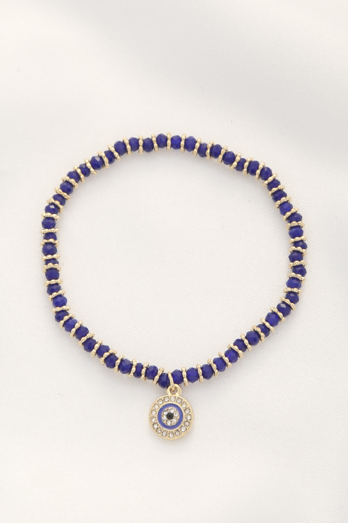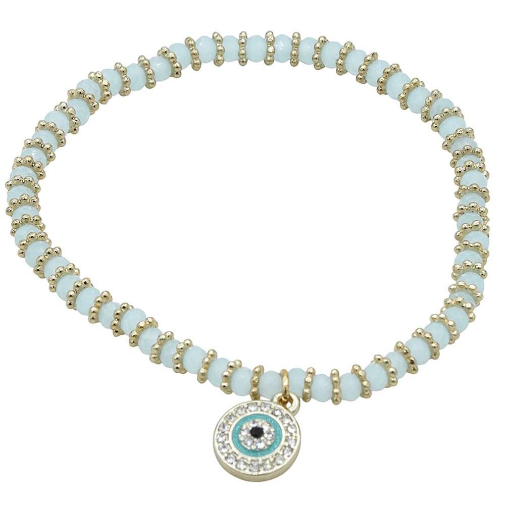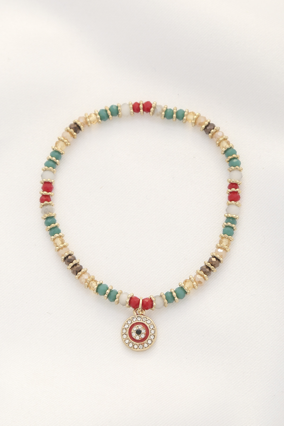 RHINESTONE EVIL EYE BEADED STRETCH BRACELET