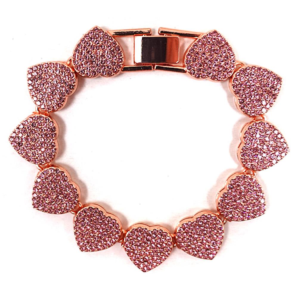 TWO TONE METAL CABLE CZ HEART MAGNETIC BRACELET