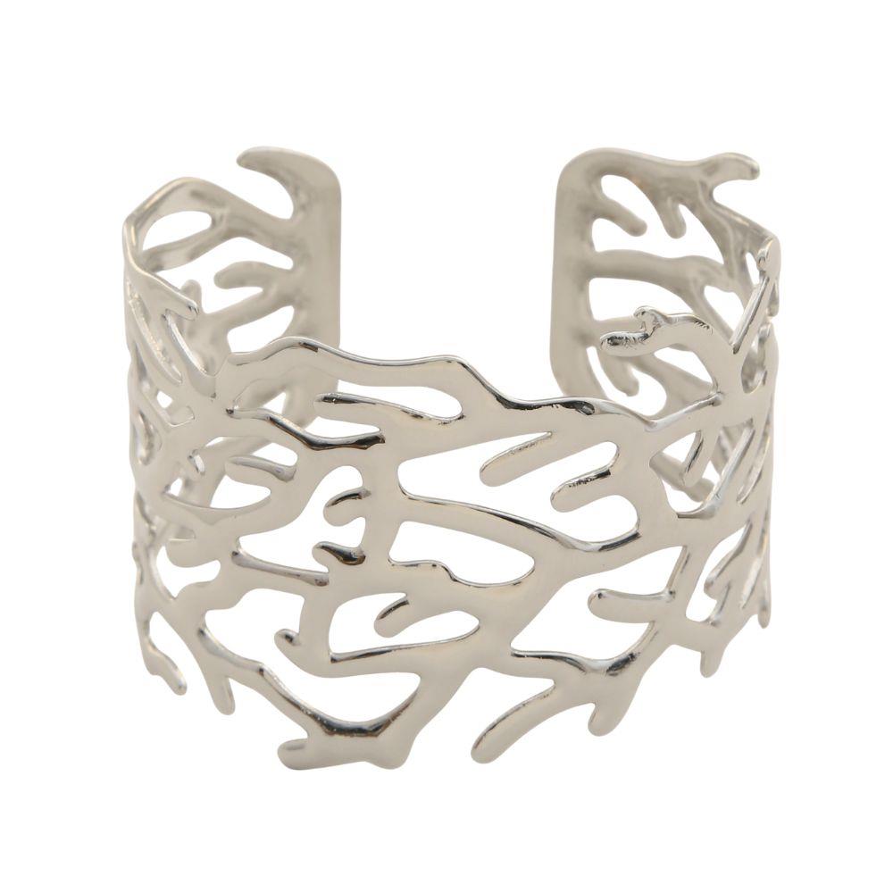 SCARF PATTERN SATIN RIBBON TEXTURED METAL CUFF BRACELET