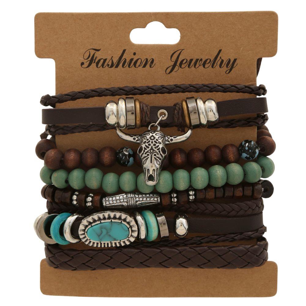 WESTERN STYLE CATTLE SKULL BEADED BRACELET SET