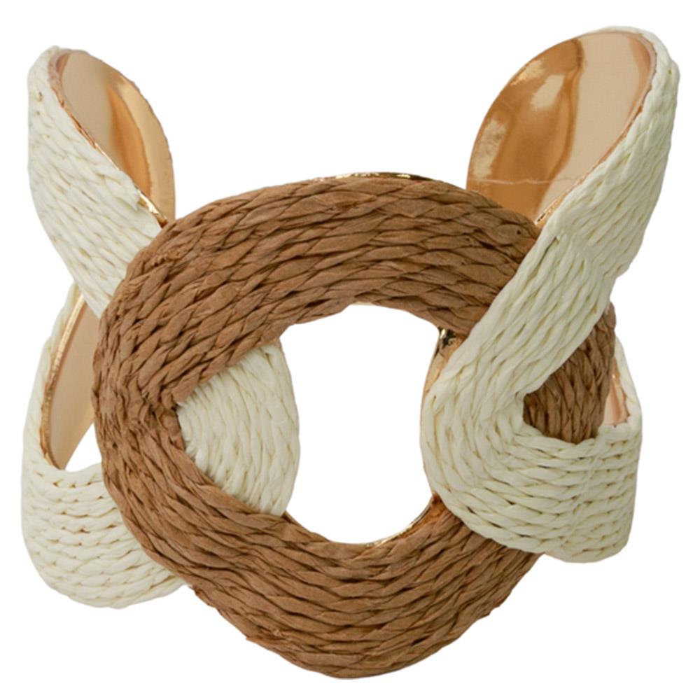 WOVEN RAFFIA DISC METAL CUFF BRACELET