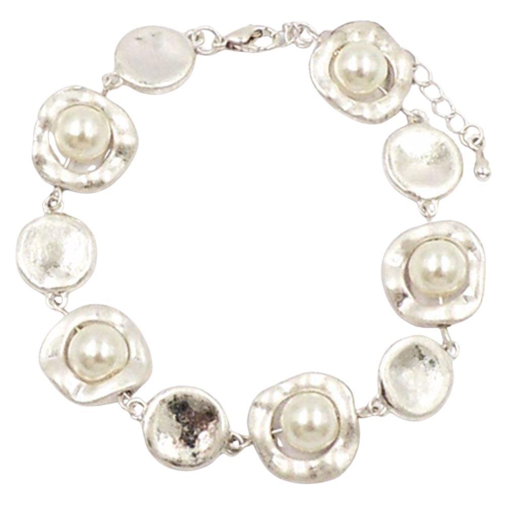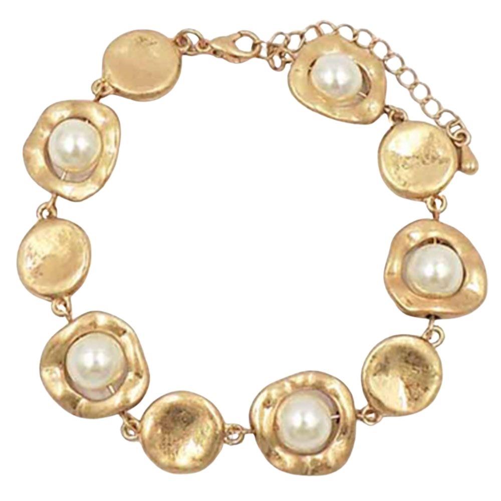 PEARL BEAD METAL LINK BRACELET SET