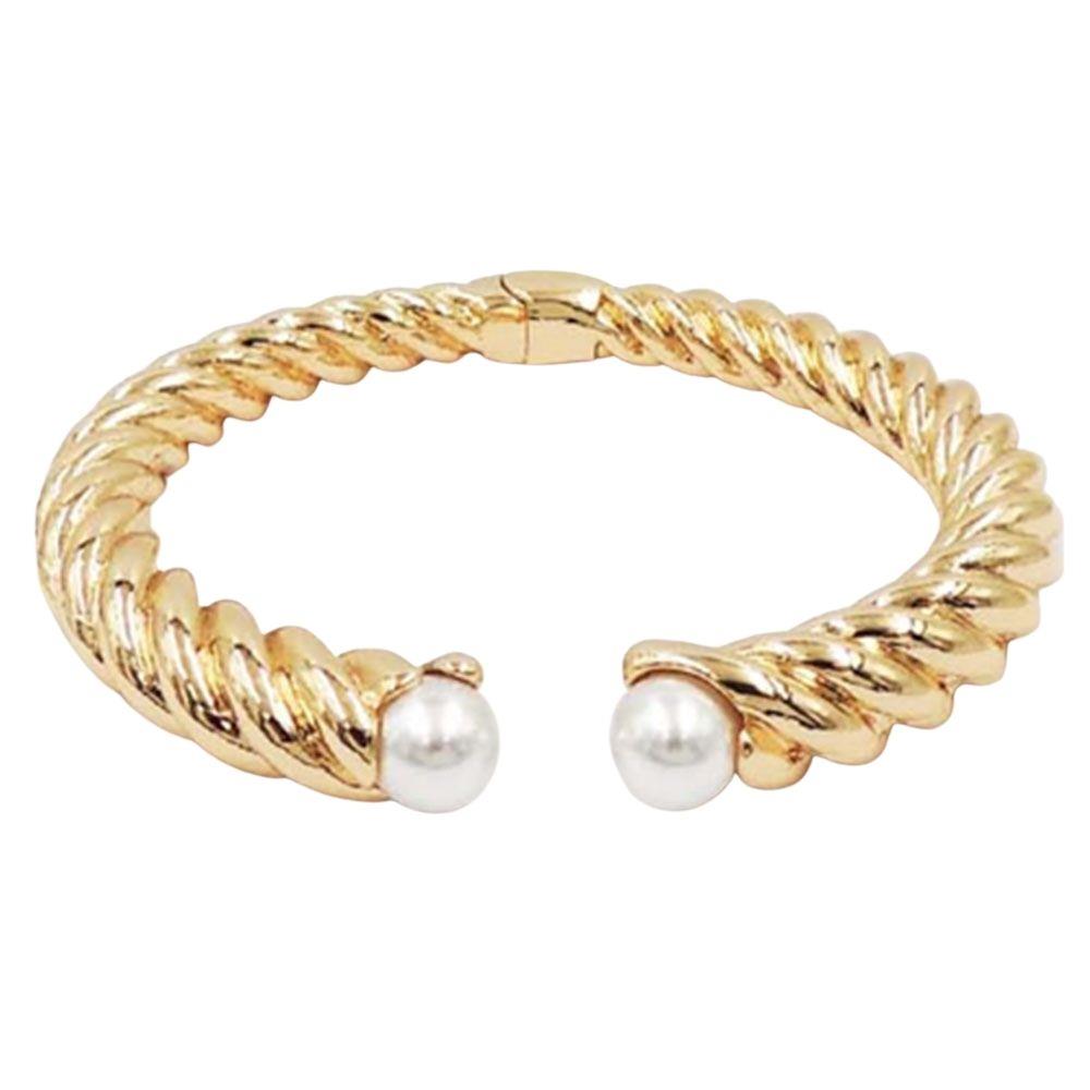 PEARL TWISITED CABLE CUFF HINGED BRACELET