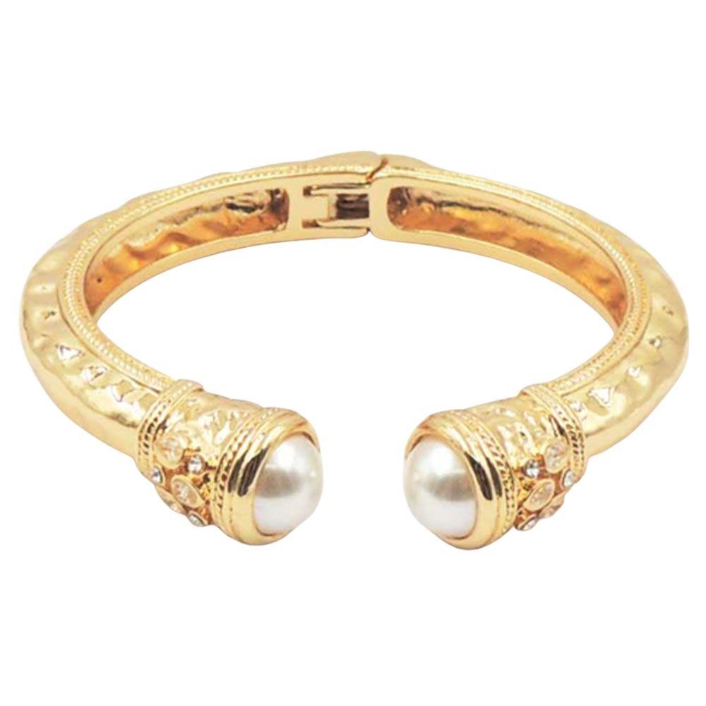 RHINESTONE PEARL METAL SWIRL BANGLE BRACELET