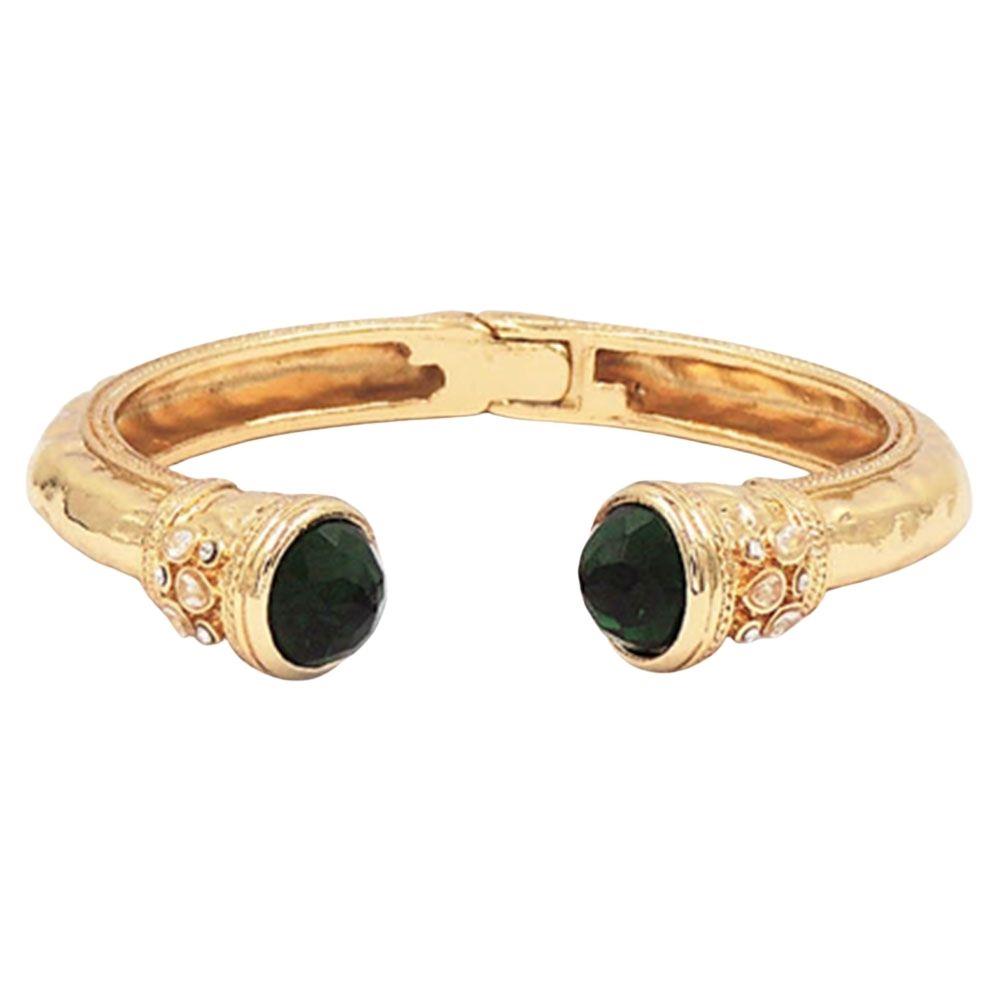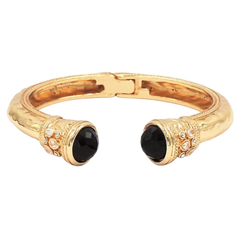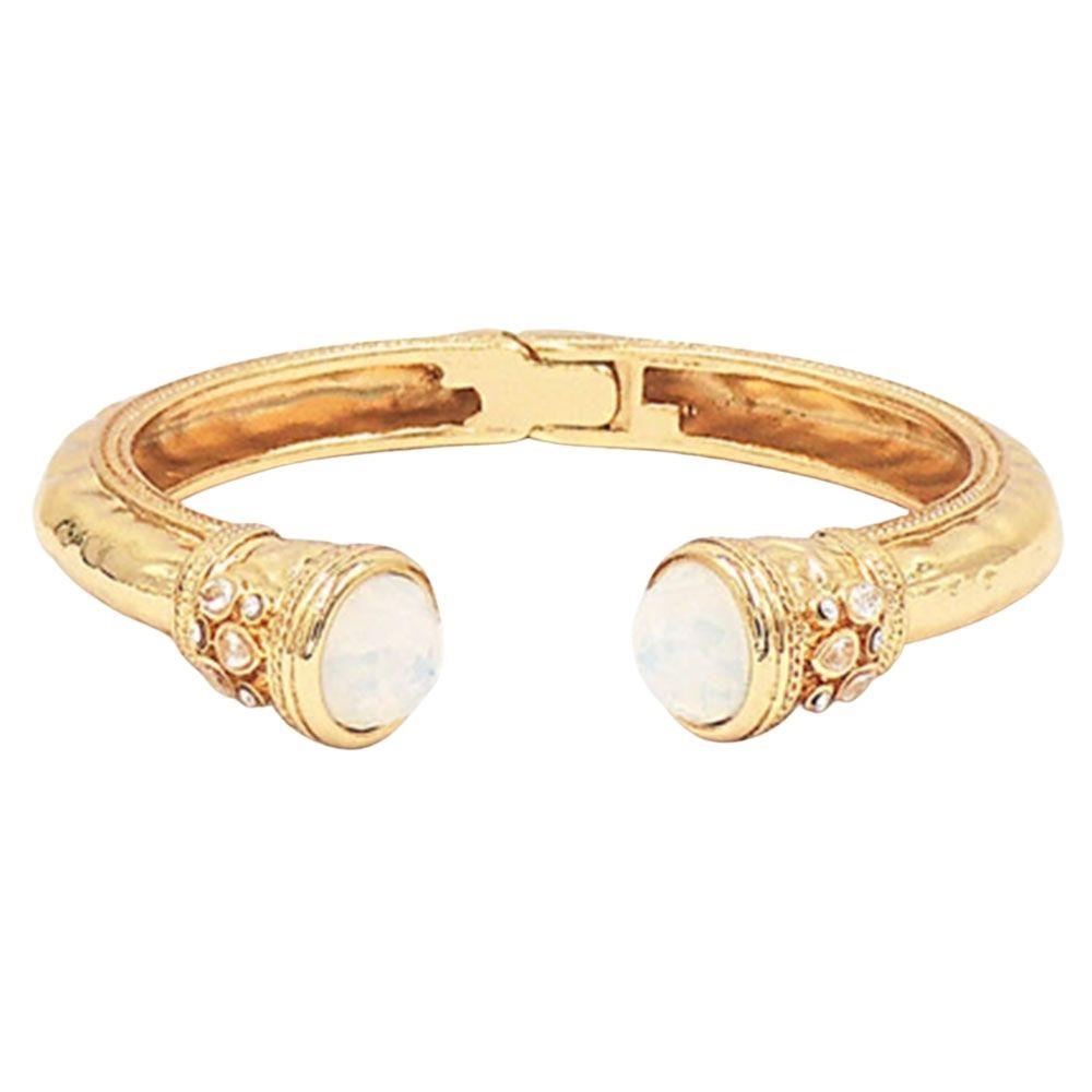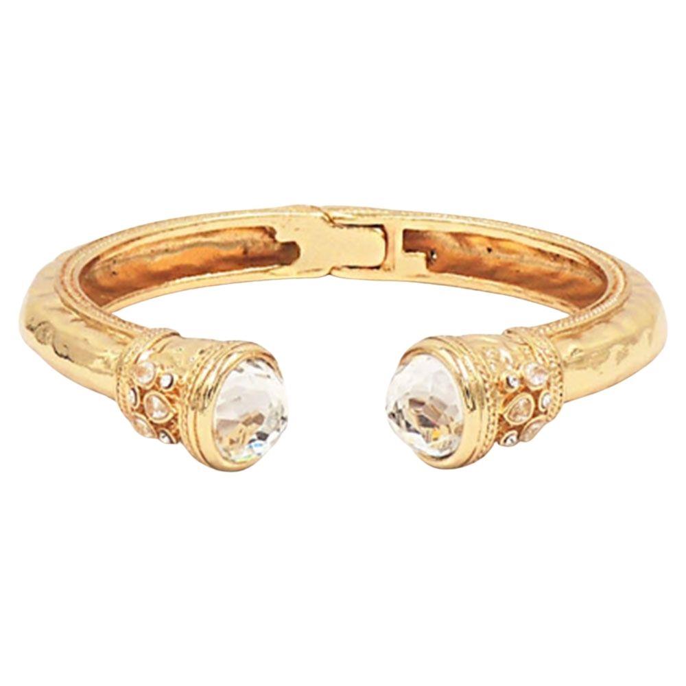 GOLD PLATED RHINESTONE STAINLESS STEEL HINGED BANGLE BRACELET