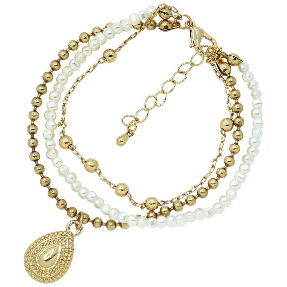 PEARL METAL CHAIN TEARDROP CHARM BRACELET