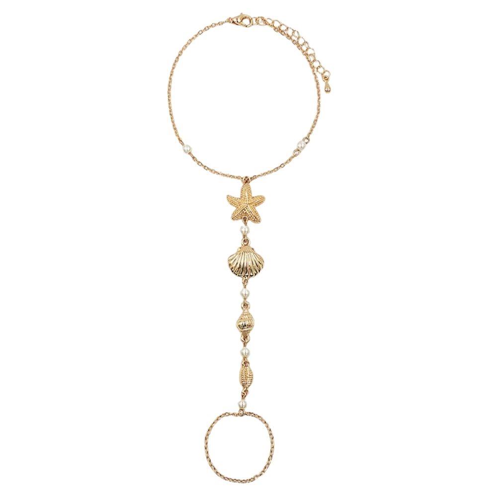 SHELL PEARL LINEAR HAND CHAIN BRACELET