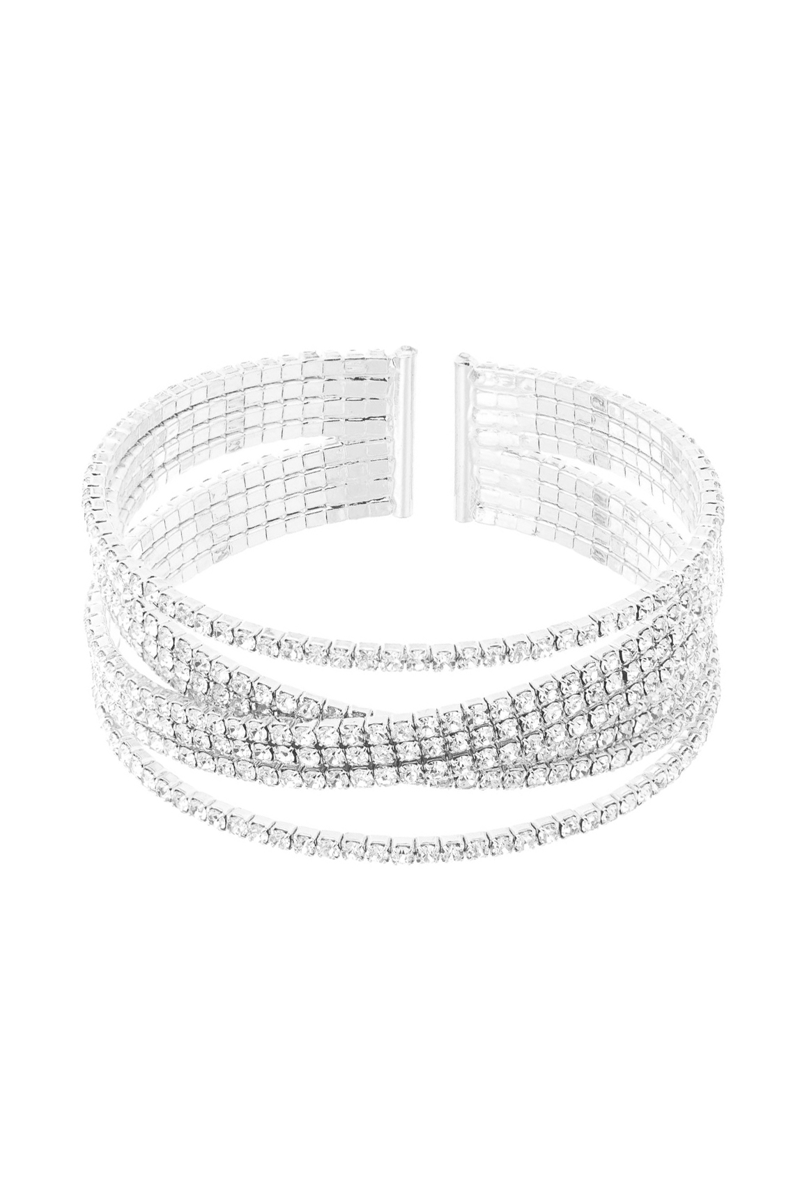 RHINESTONE CUBIC ZIRCONIA 6LINE 2ROW CROSSOVER WIRE BRACELET
