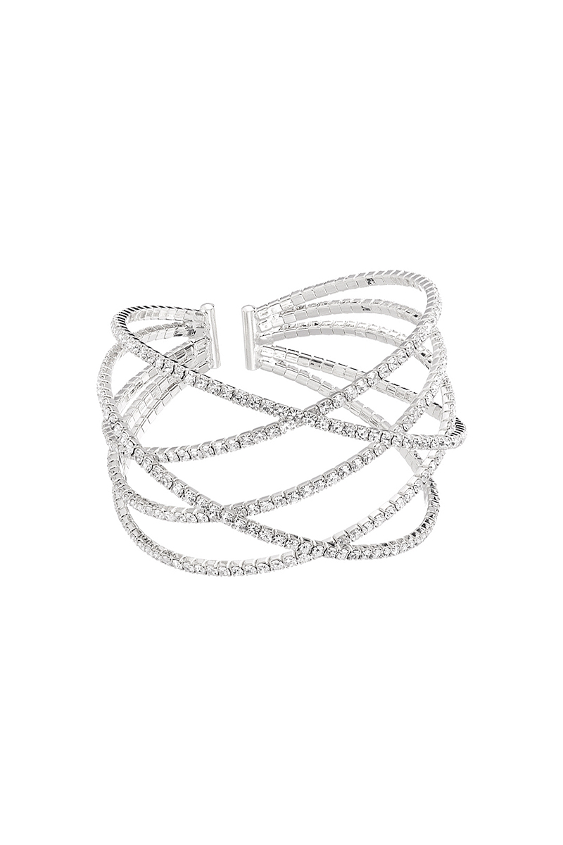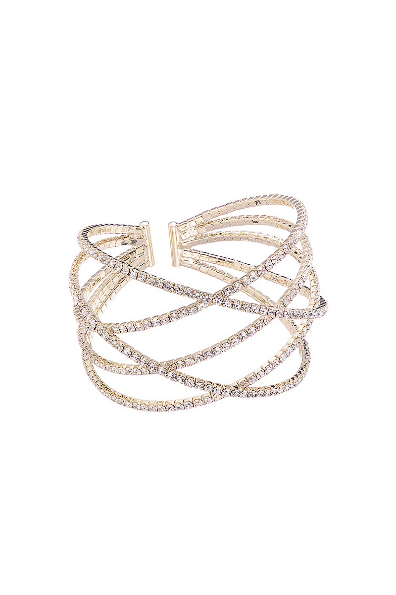 RHINESTONE CROSS LINE OPEN FLEXIBLE CUFF BRACELET