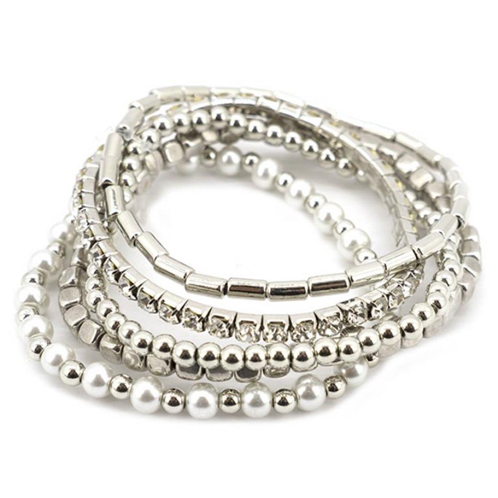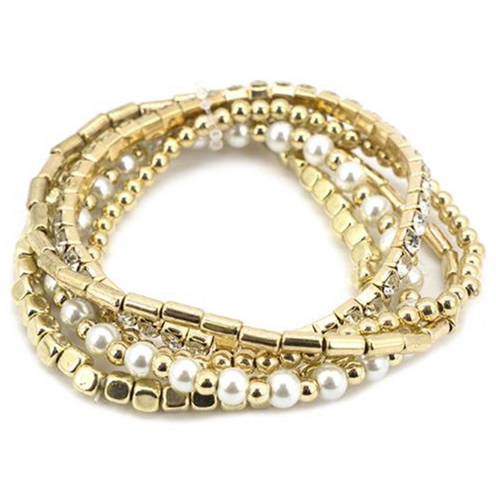 FASHION METAL PEARL BEAD STRETCH MULTI BRACELET