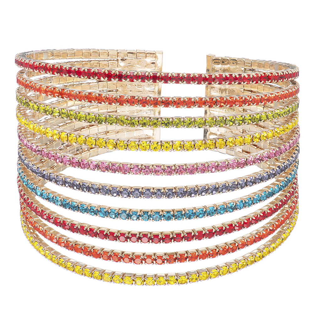 MULTI RHINESTONE CUFF MEMORY WIRE BRACELET