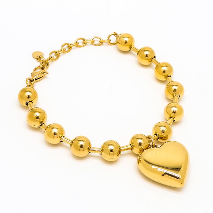 BALL CHAIN HEART CHARM  BRACELET