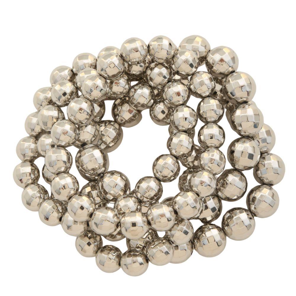 POLISHED METAL BALL CLUSTER STRETCH BRACELET SET