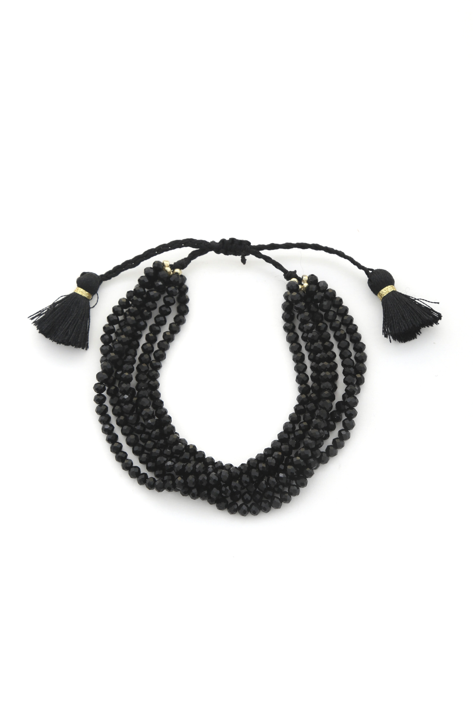 BEADED LAYERED TASSEL SLIDE BRACELET