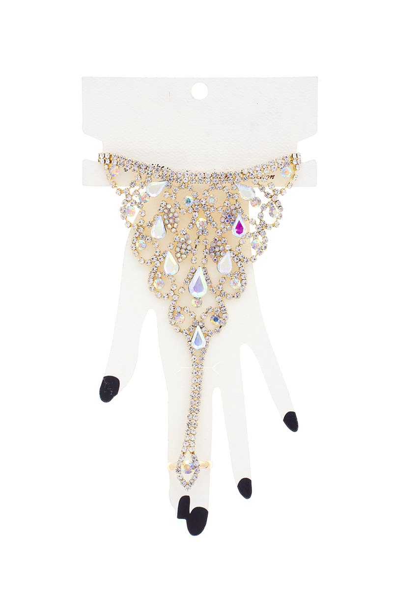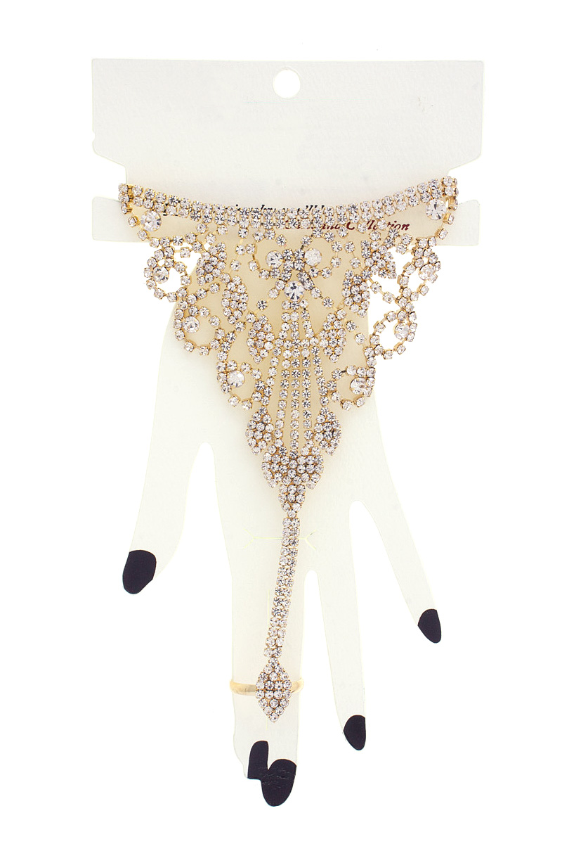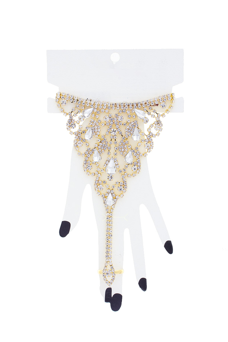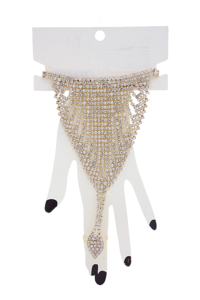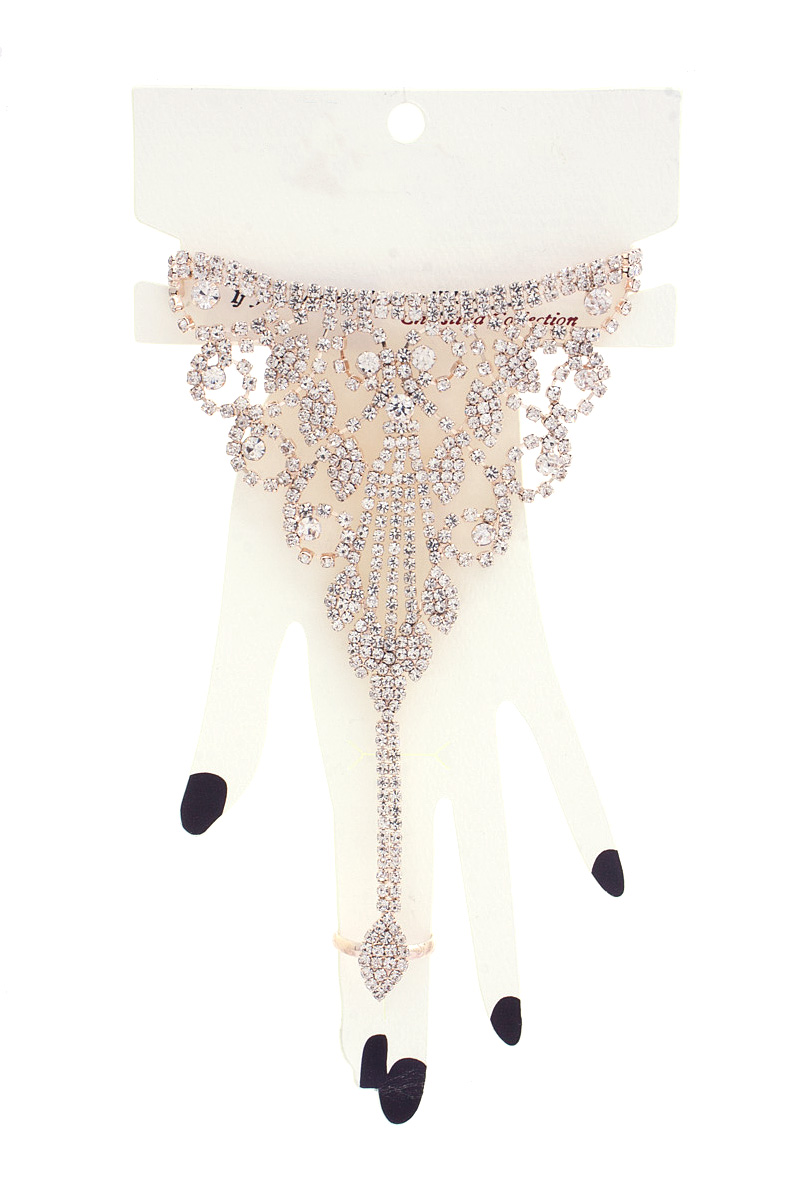 LEAF PATTERN RHINESTONE FINGER RING BRACELET