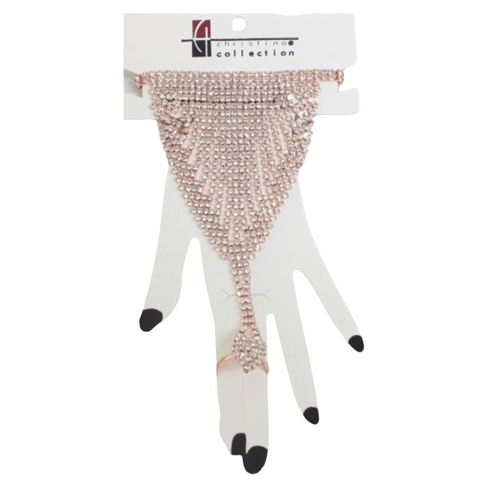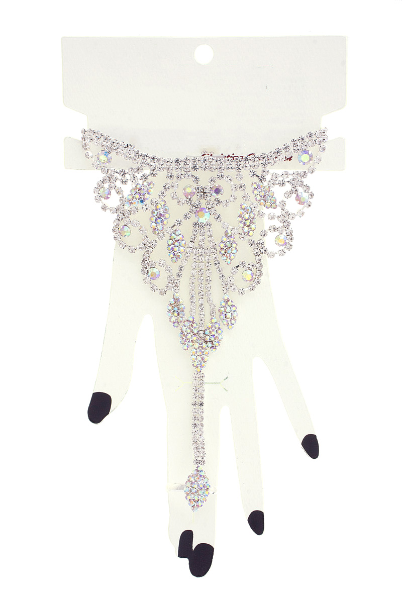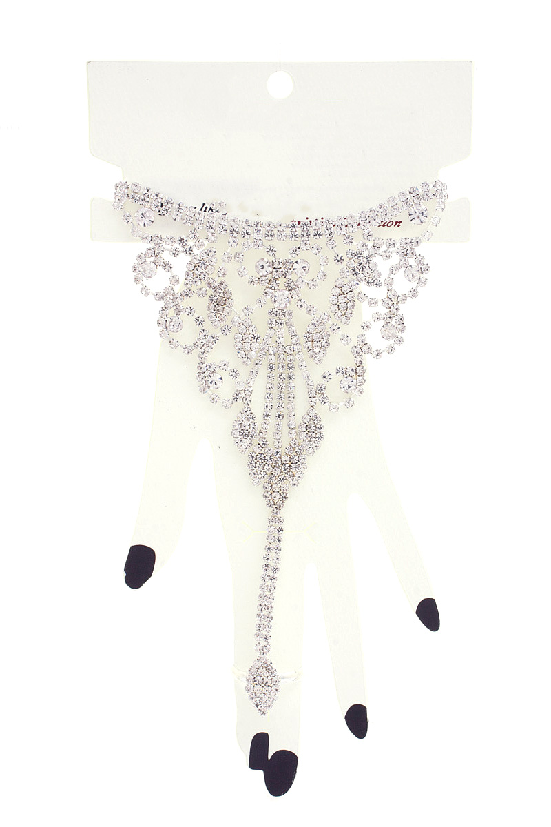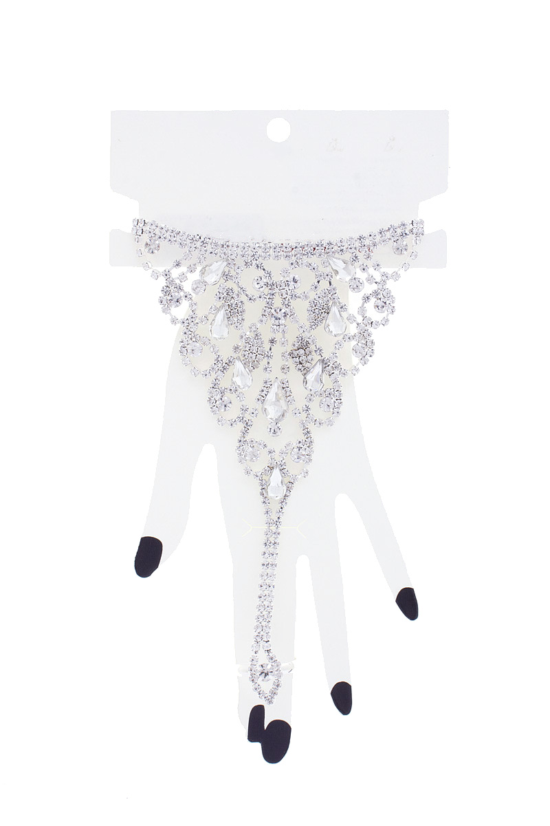 LEAF PATTERN RHINESTONE FINGER RING BRACELET