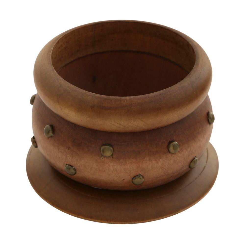 WOODEN STUDDED STACKED BANGLE BRACELET SET