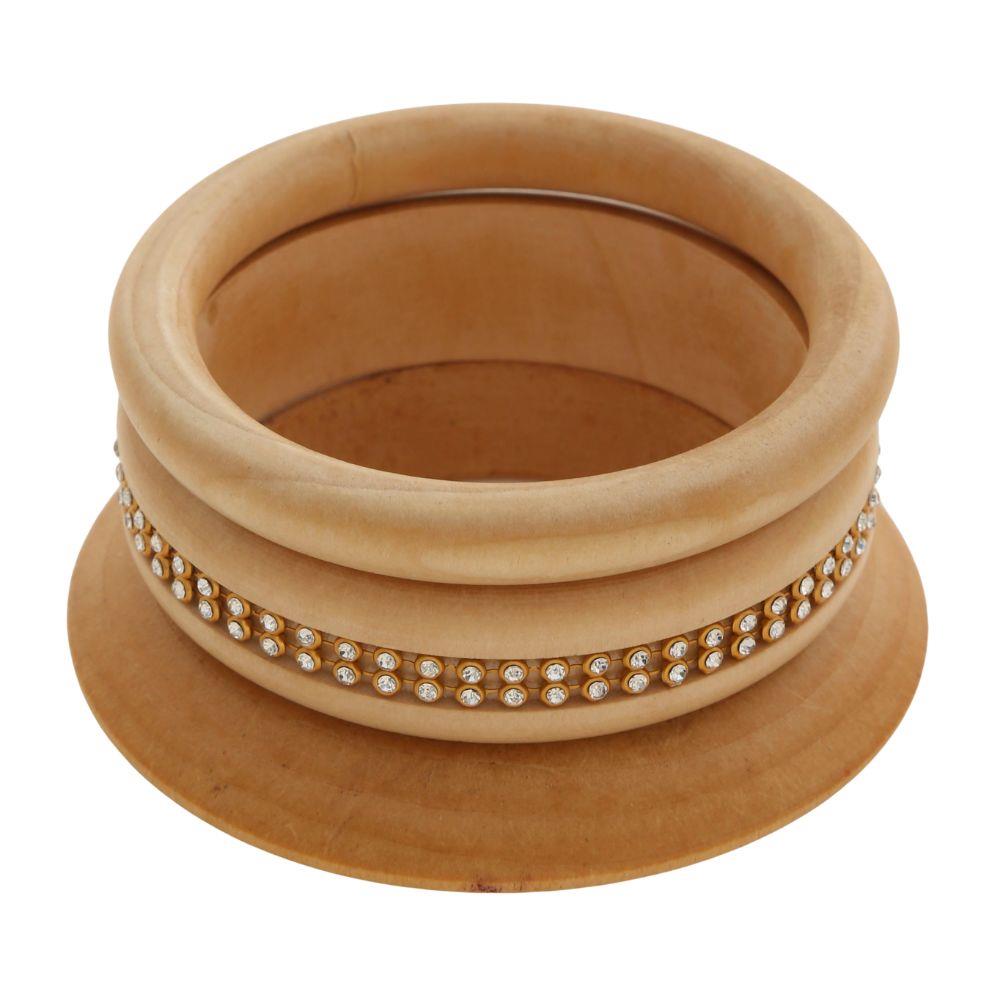 WOODEN RHINESTONE ACCENT STACKED BANGLE BRACELET SET