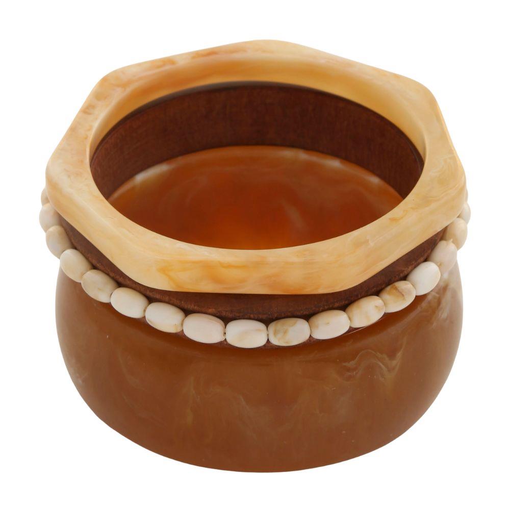WOODEN RESIN MIXED STACKED BANGLE BRACELET SET