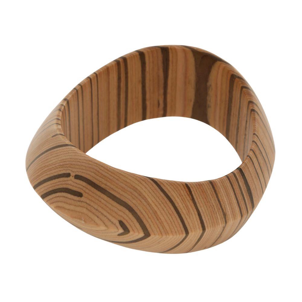WOODEN NATURAL STRIPE ANGLED BANGLE BRACELET