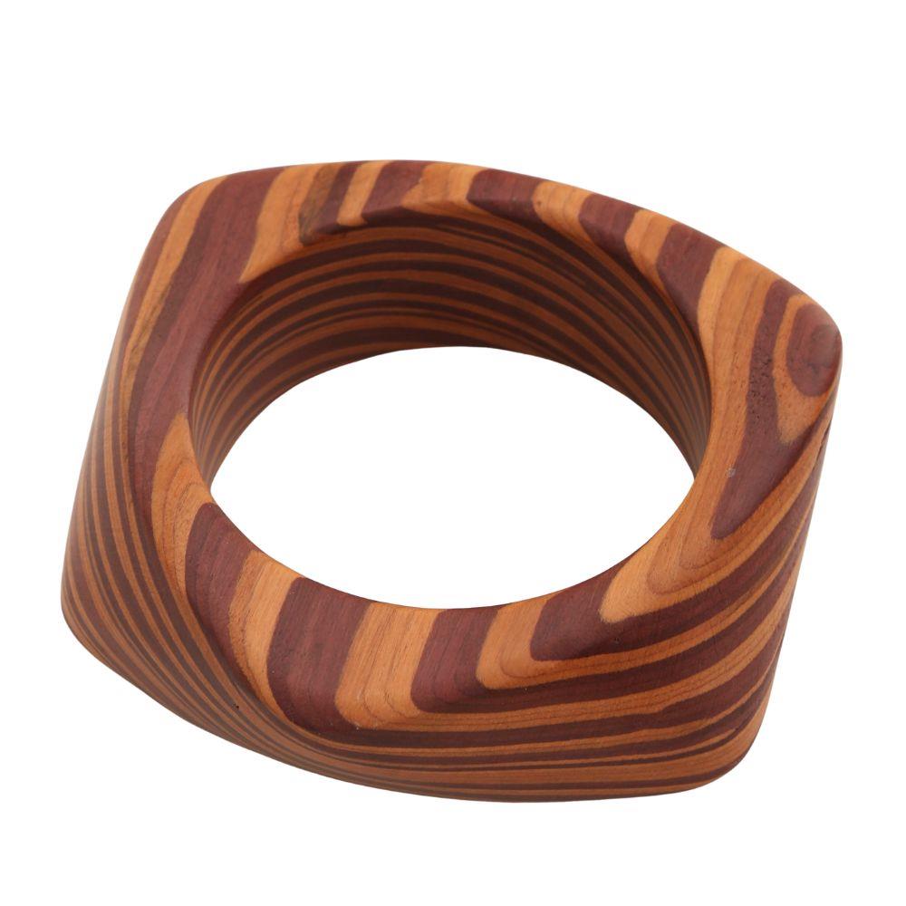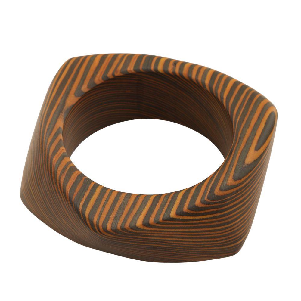 WOODEN STRIPE ANGLED BANGLE BRACELET