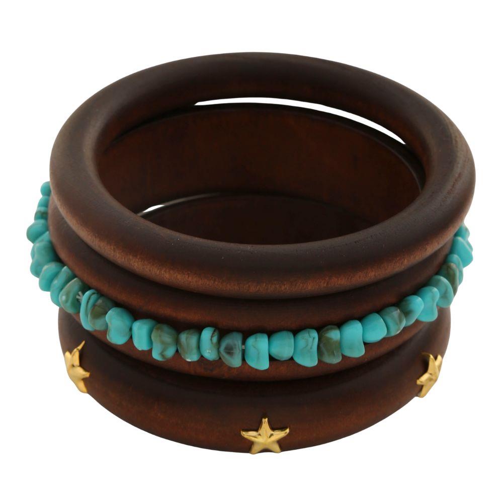 WOODEN STAR BEAD STACKED BANGLE BRACELET SET