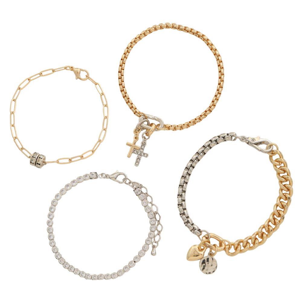 TWO TONE CROSS HEART CHARM ASSORTED BRACELET SET