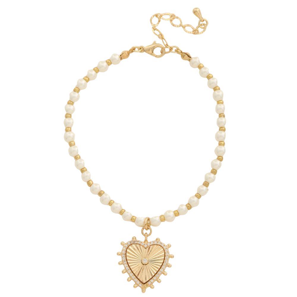 HEART CHARM PEARL BEAD BRACELET