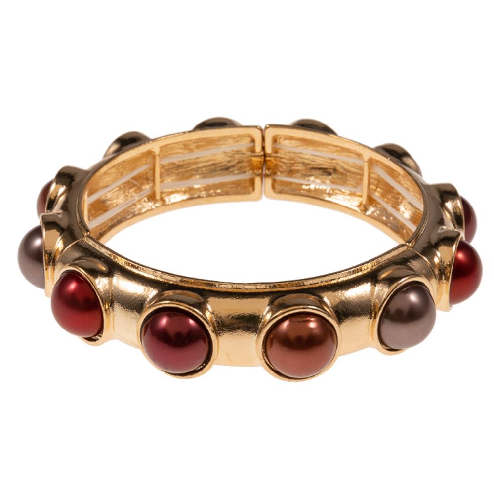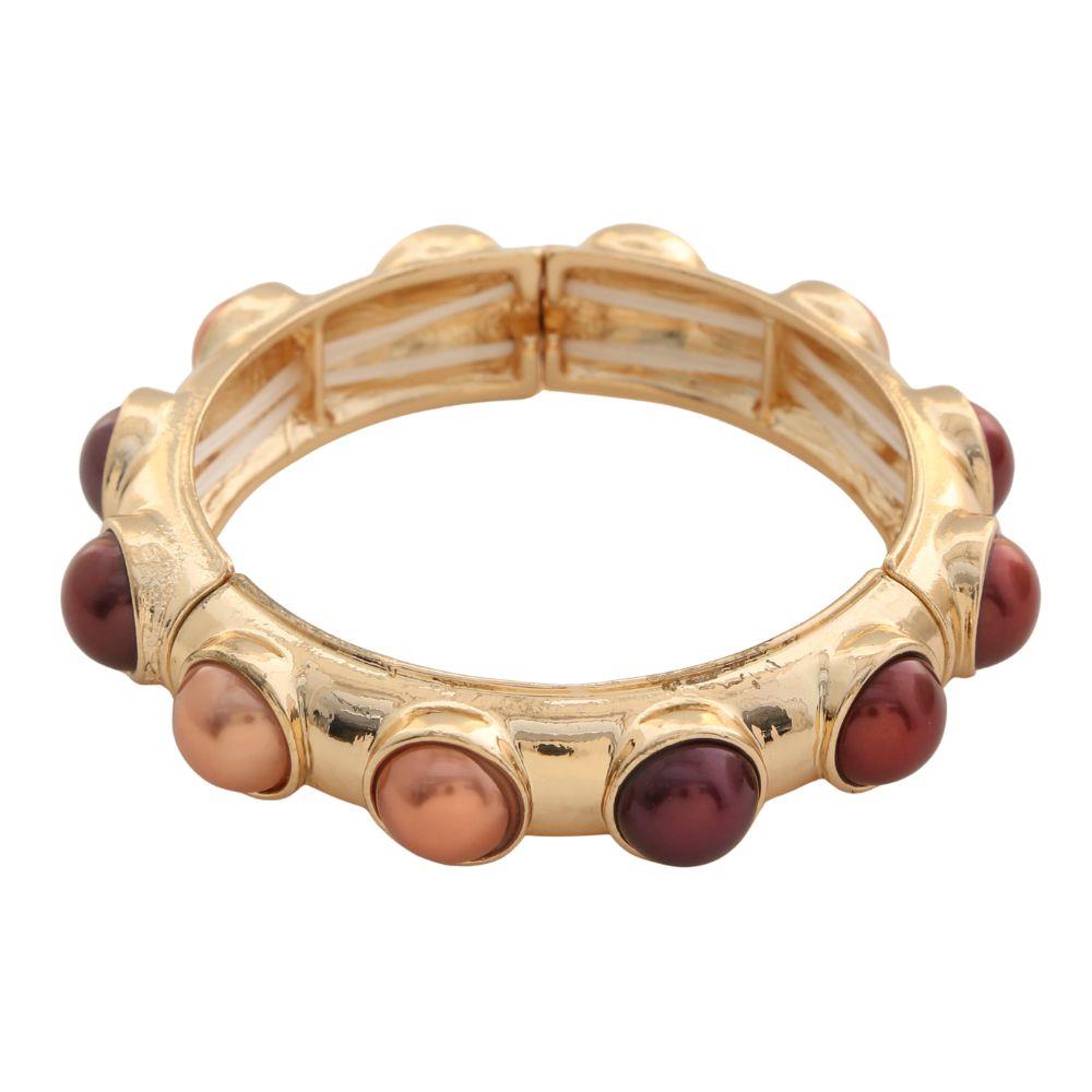GRADATION COLORED PEARL CABOCHION STRETCH BRACELET