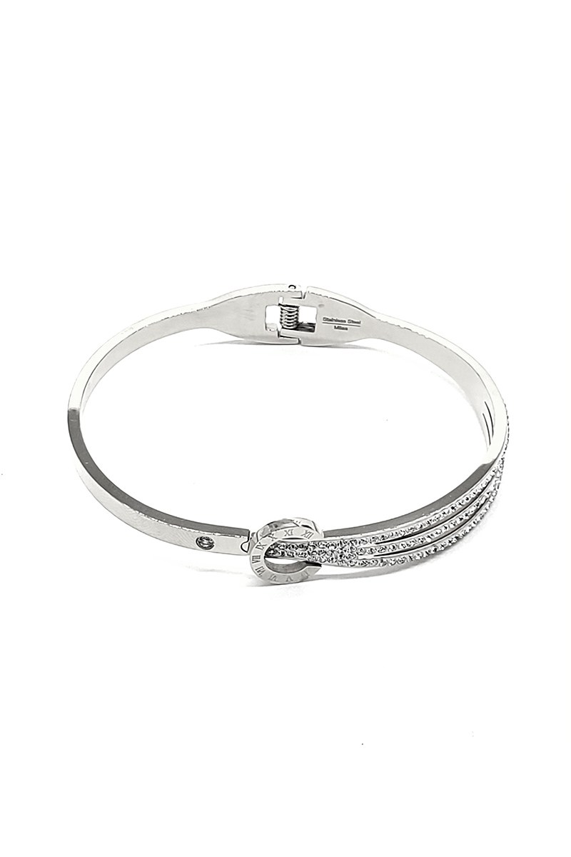 METAL RHINESTONE MIX ROMAN NUMERALS HINGE BRACELET