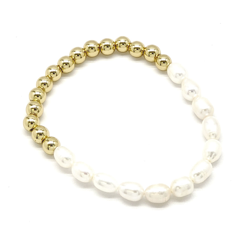 GOLD DIPPED METAL CHAIN LINK PEARL ACCENT BRACELET