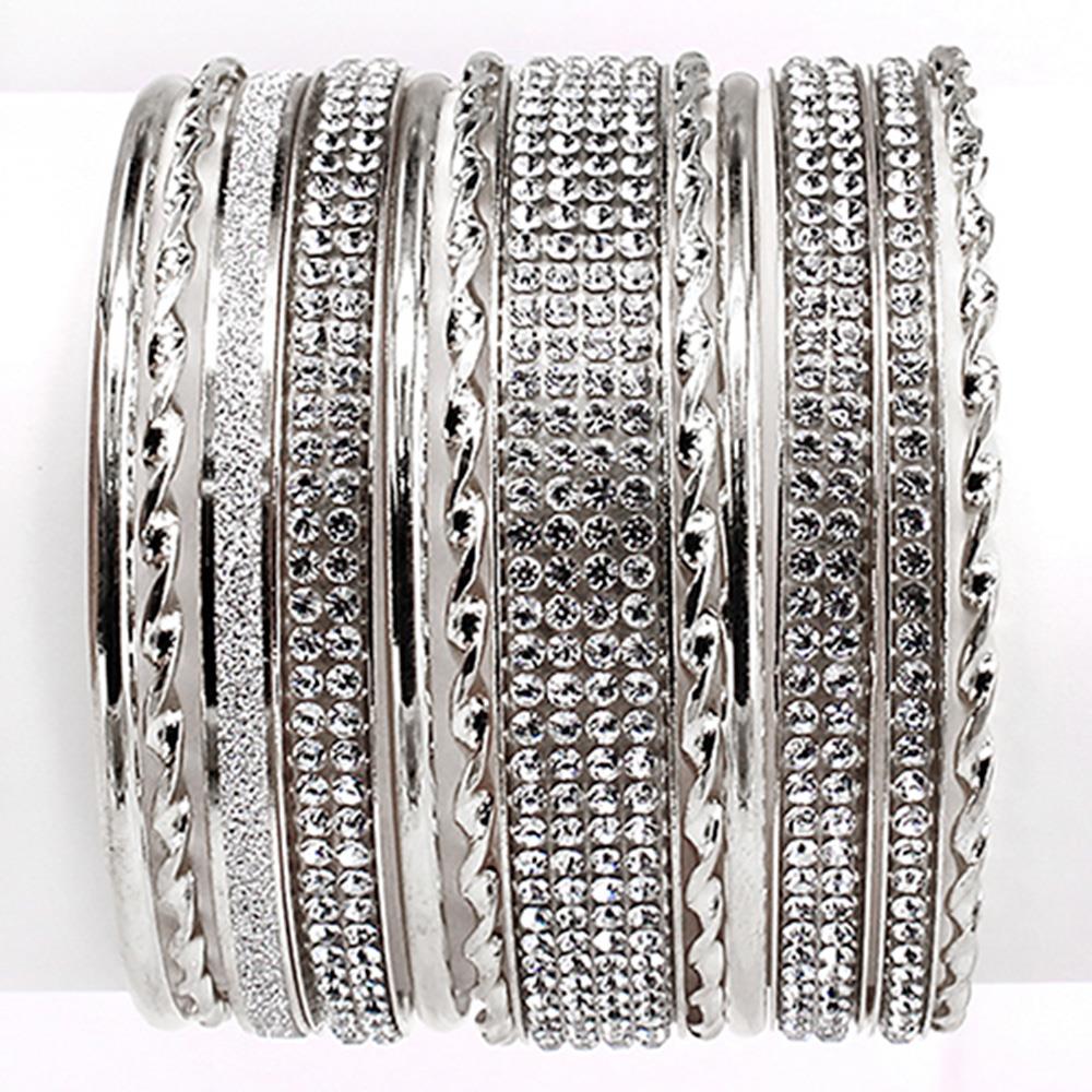 SQUARE CRYSTAL TWO TONE LAYERED METAL BRACELET